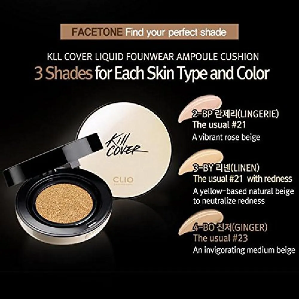 15 Fair 2 Lingerie 25 Ivory 3 Linen 35 Vanila 4 Ginger and 5 Sand. Web The Club Clio Kill Cover Glow Cushion Sand is a high-coverage cushion foundation that gives the skin a healthy dewy look. True to its claims the Clio Kil.
